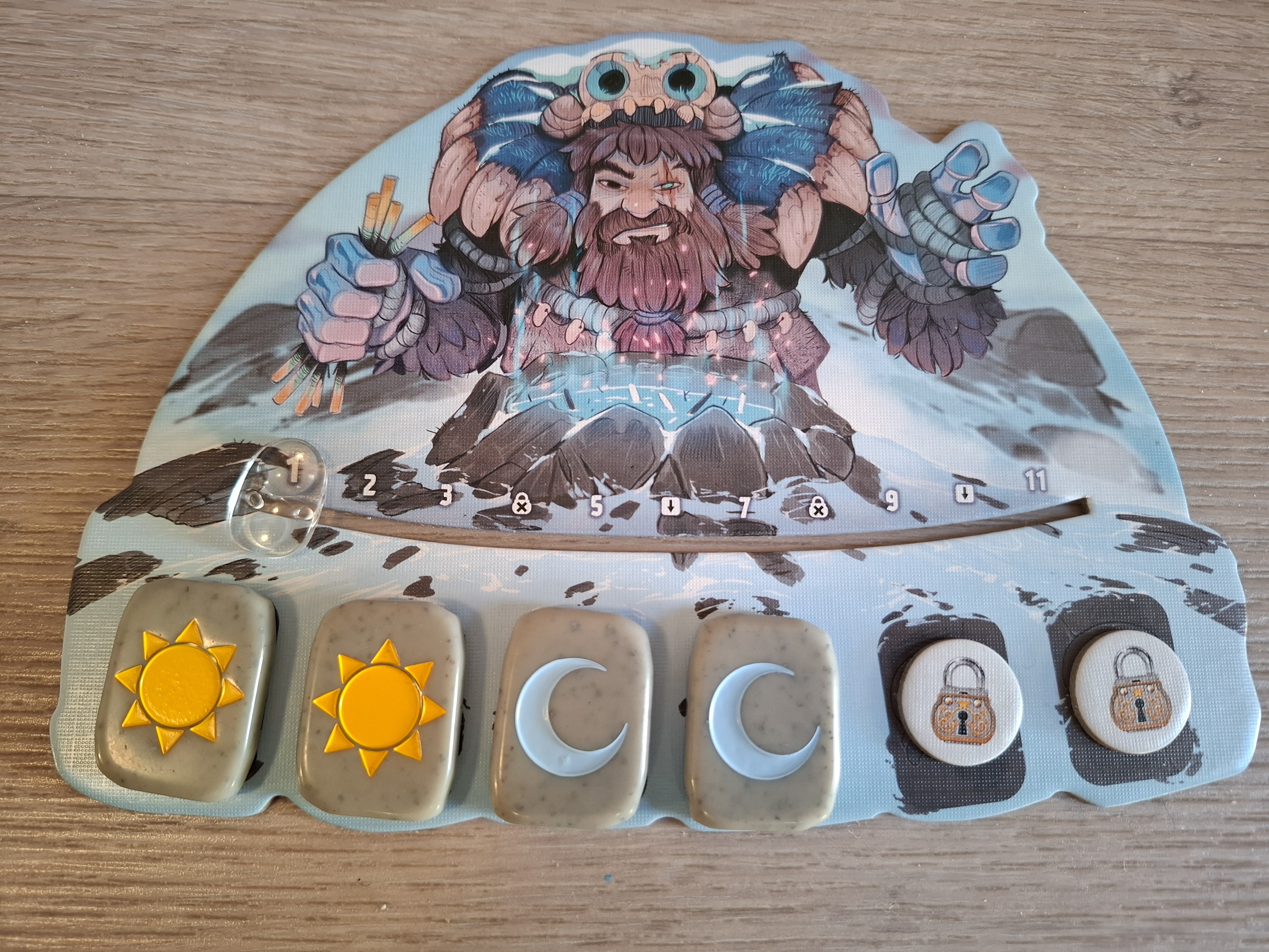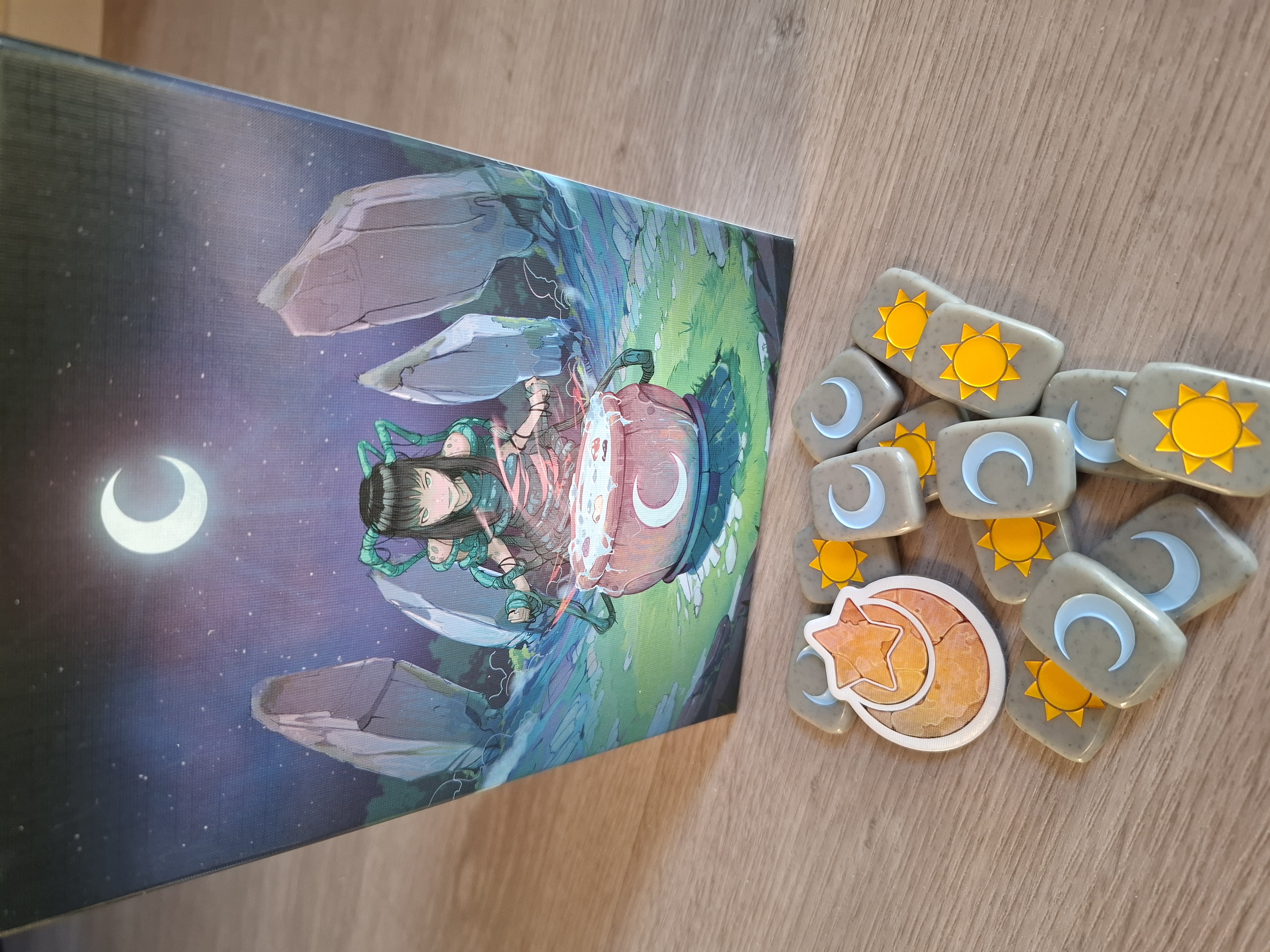 deux autres sur leur face lune pour la nuit), un compteur de cartes et deux