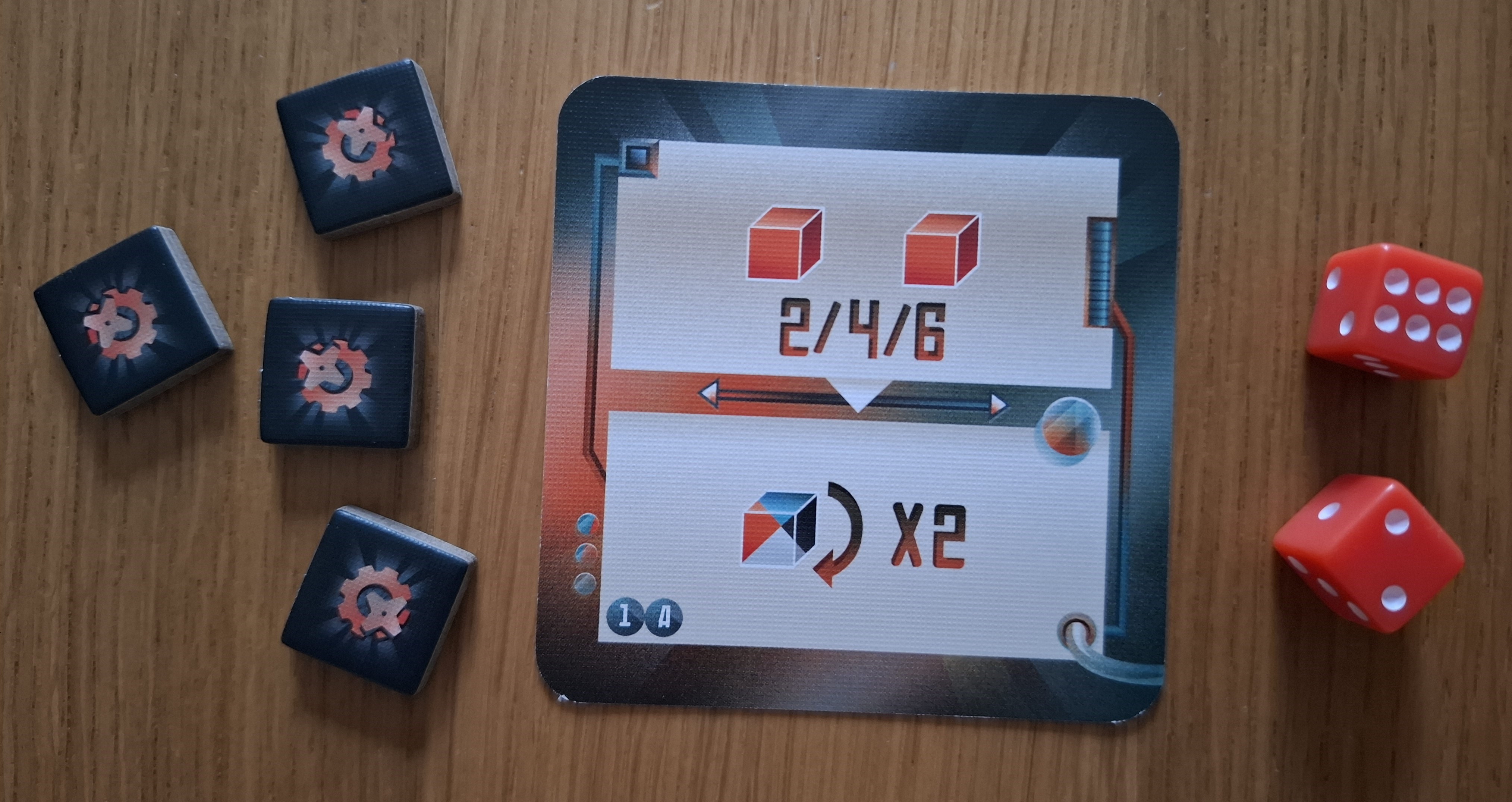 Pour bien agencer les dés afin de résoudre des cartes, il convient donc dutiliser judicieusement leffet des récompenses ou de bricoler. Pour ce faire, vous pouvez utiliser vos jetons bricolage: un pour intervertir deux dés adjacents et deux pour changer la valeur dun dé.
