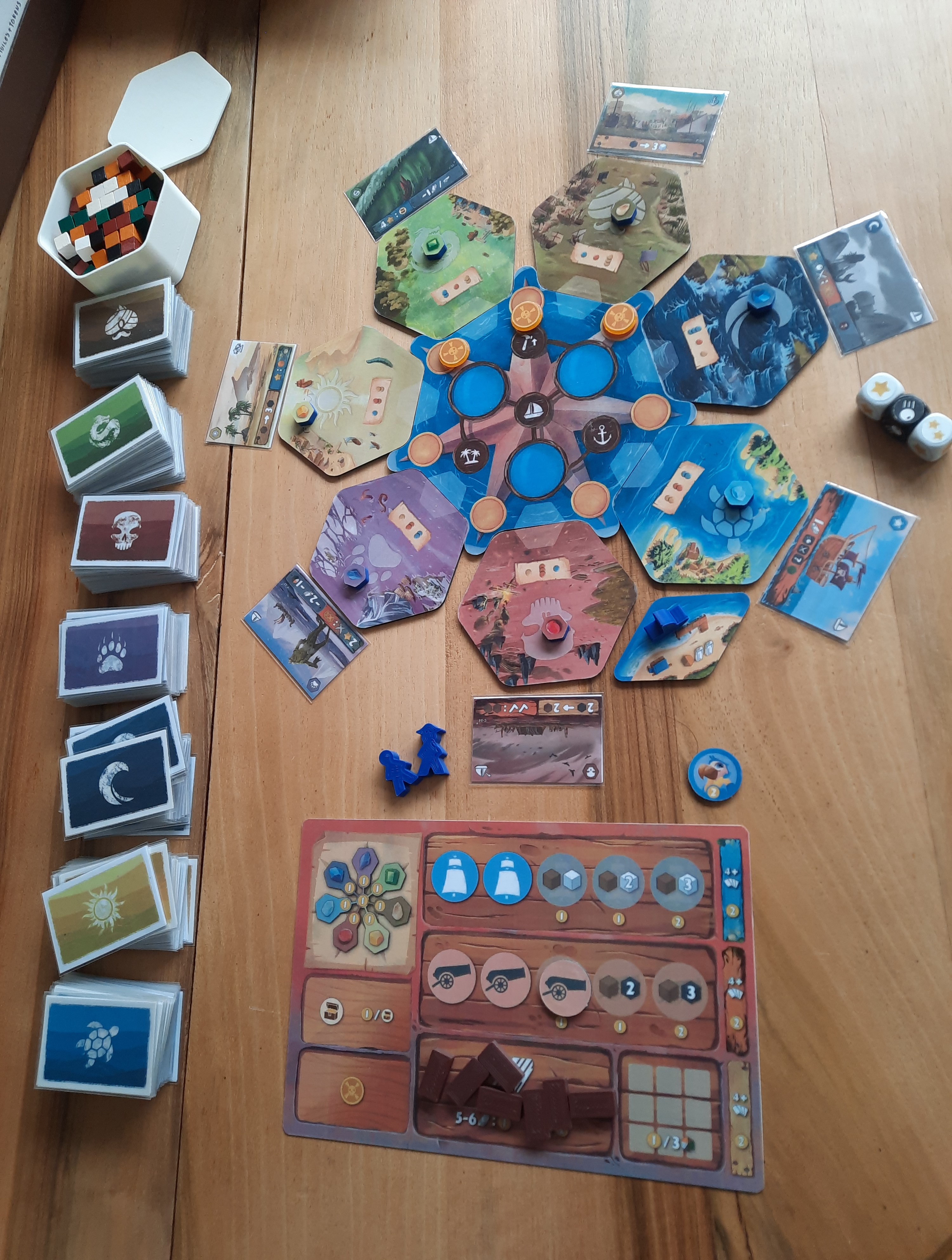 explorations. Débute ainsi un travail en co-construction. Dans un premier temps, les règles sont transformées et sont ajoutés le plateau dactions et les mers (sous la forme de tuiles rondes), ainsi que les bonus des mers. Un gros travail est effectué sur lergonomie et un nouveau proto voit le jour en février 2022, notamment avec des tuiles hexagonales qui permettent différentes configurations. En avril, une analyse du type de motivation des joueurs est effectuée, suivie, en mai, dune analyse thématique. Les éditeurs décident que chaque mer doit correspondre à une époque. Chacune fait dailleurs lobjet dune étude détaillée. Enfin, Yvan Tesi, illustrateur toulonnais, est ajouté au projet en décembre 2022. Une nouvelle version du proto est inaugurée au festival Wanna Play à Bruxelles, en juillet 2023, puis au Brussels Games Festival. Le jeu bénéficie dune grande visibilité, ce qui encourage Thomas et Matthieu à participer à dautres festivals: le LudiBruche et le Festival des jeux de Cannes en 2024. Avec un grand succès: «Le dimanche matin, des gens ont couru pour pouvoir tester notre jeu», se souvient Thomas. Dans le même temps, des créateurs de contenu sont contactés dans de nombreux pays, des États-Unis à Taïwan, en passant par lEspagne, lItalie, lAllemagne, la Pologne, la Roumanie, la Finlande, lAngleterre, les Pays-Bas et la France. «Nous avons pris le risque de leur proposer de parler du jeu, mais sans leur offrir de rémunération. Sils acceptaient, nous leur parlions de la contrepartie: les représenter dans le jeu sous les traits dun capitaine», expose Thomas. Reste à développer le jeu dans son ensemble car, comme la constaté une joueuse dans un festival, «cest tout un univers qui a été développé!». Le jeu comprend en effet trois modes (découverte, avancé et solo) et de nombreux modules. Thomas explique: «La boîte de base représente 25 % de lunivers des 7 mers. Le reste se trouve dans les différents modules. En fonction du mode et de lextension, la manière de jouer change, ce qui oblige à développer des stratégies différentes et permet un renouvellement.» Sont ainsi créées «Pirates et corsaires», «Nouveaux gouverneurs» et «Les aventures infinies», des extensions compatibles entre elles, avec du matériel qui pourrait être intégré dans une seule boîte. Doit encore être développé «Saison des brumes» qui verra apparaître un vaisseau fantôme, des brumes entre les mers et un mini-legacy. «Ce serait génial pour les fans et permettrait de clore notre univers, qui a véritablement un sens», conclut Thomas. Et pour donner corps à tout ce monde, il est aussi fait appel à Jonathan Aucomte, illustrateur bien connu. Et cet univers suscite un bel enthousiasme! Le jeu trouve ses fans dont certains prennent linitiative de le présenter dans divers festivals. Grisés par cette ferveur, Thomas et Matthieu lancent, le 22 mars dernier, une campagne de financement participatif qui a finalement été interrompue le 10 avril, faute du succès escompté. Chez Critical Hut, on comprend les raisons de ce couac. «En tant que débutants dans lédition, nous avons commis des erreurs. Nous nous sommes notamment laissés emporter par notre enthousiasme et nous avons visé trop haut. Si nous nous en étions tenus à notre plan de base, ce ne serait pas arrivé. De plus, nous avons surtout visé les nouveaux backers, mais ils ne représentent traditionnellement que 5 à 10 % des participants à une campagne de financement», explique Thomas qui ajoute: «Et nous aurions dû écouter les signes. Le week-end du lancement, nous devions présenter le jeu à LudiNord, mais ils nous avaient oubliés. Ils nous ont donc fourni un emplacement en dernière minute, dans la salle des protos, au pied dune scène très bruyante. Et pour couronner le tout, la veille, notre voiture nous a lâchés!». Quand ça ne veut pas . Depuis lors, un sondage a été effectué, les boulons ont été resserrés, les erreurs corrigées et de nouveaux fans conquis. Croisé par hasard à Montpellier, Guillaume Chifoumi, le Monsieur Guillaume de Tric Trac, a exprimé son opinion: « Vous navez pas à avoir honte de votre jeu car vous en tenez un [vrai jeu] en main». Des illustrateur et illustratrices supplémentaires, Clément Masson, Emmanuelle Cotte et Mathilde Durand, ont été appelés et les fabricants se bousculent au portillon. Au final, «Les 7 mers» représente une somme considérable de travail pour Critical Hut (plus de 600 parties du jeu de base, 500 jours de travail) et un important investissement financier. Une vingtaine de personnes a participé de près ou de loin au développement. Léditeur bruxellois se sent donc prêt pour la nouvelle campagne, qui débutera le 17 mai prochain, toujours sur Gamefound. «Cest la plateforme idéale pour nous, car européenne, sérieuse et multilingue», explique Thomas. «Cette nouvelle campagne sera plus équilibrée. Cette fois, nous sommes sûrs de notre coup.» Il faudra sans doute attendre mars 2025 pour livrer les jeux aux backers. Une version retail, allégée et destinée aux familles, sera ensuite créée. Un distributeur sest déjà montré intéressé pour les pays germanophones. Critical Hut va continuer à écumer les festivals. «Cette fois, nous aurons des boîtes à vendre!». Et la suite? Le retour de Card Trip et lédition dun jeu original, mais avec moins de travail de développement. «Nous savons que nous tenons le bon bout. Nous essayons daller de lavant. Nous avons envie de jeux qui se renouvellent, dexpériences qui durent dans le temps et dexploration de zones encore inexploitées.» Et despérer que «Les 7 mers» constituera un premier succès qui permettra denclencher une dynamique positive pour Critical Hut. |