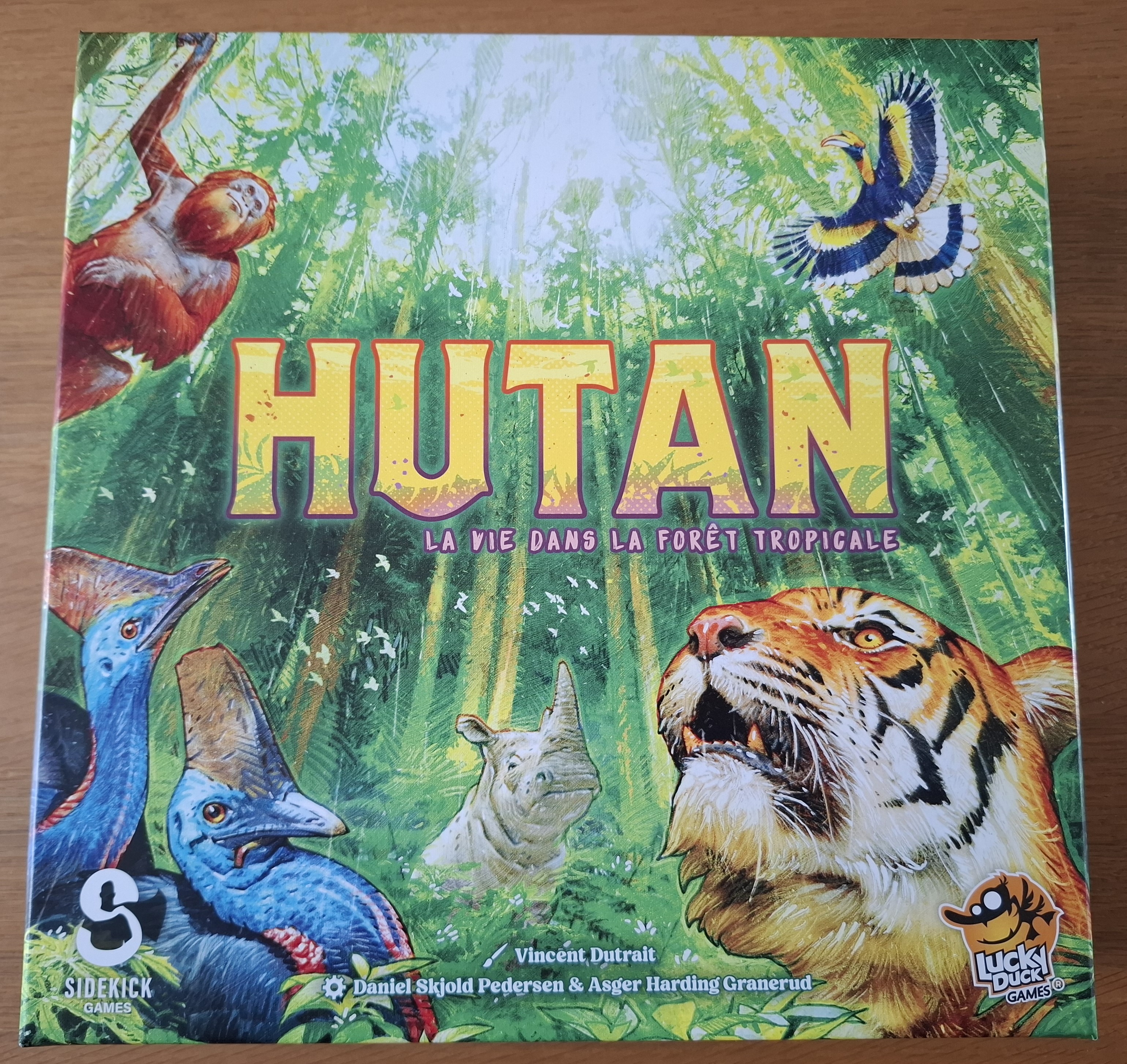 Hutan: la vie dans la forêt tropicale : un jeu de Daniel Skjold Pedersen et Asger Harding Granerud, illustré par Vincent Dutrait et publié en mars 2025 par Lucky Duck Games.