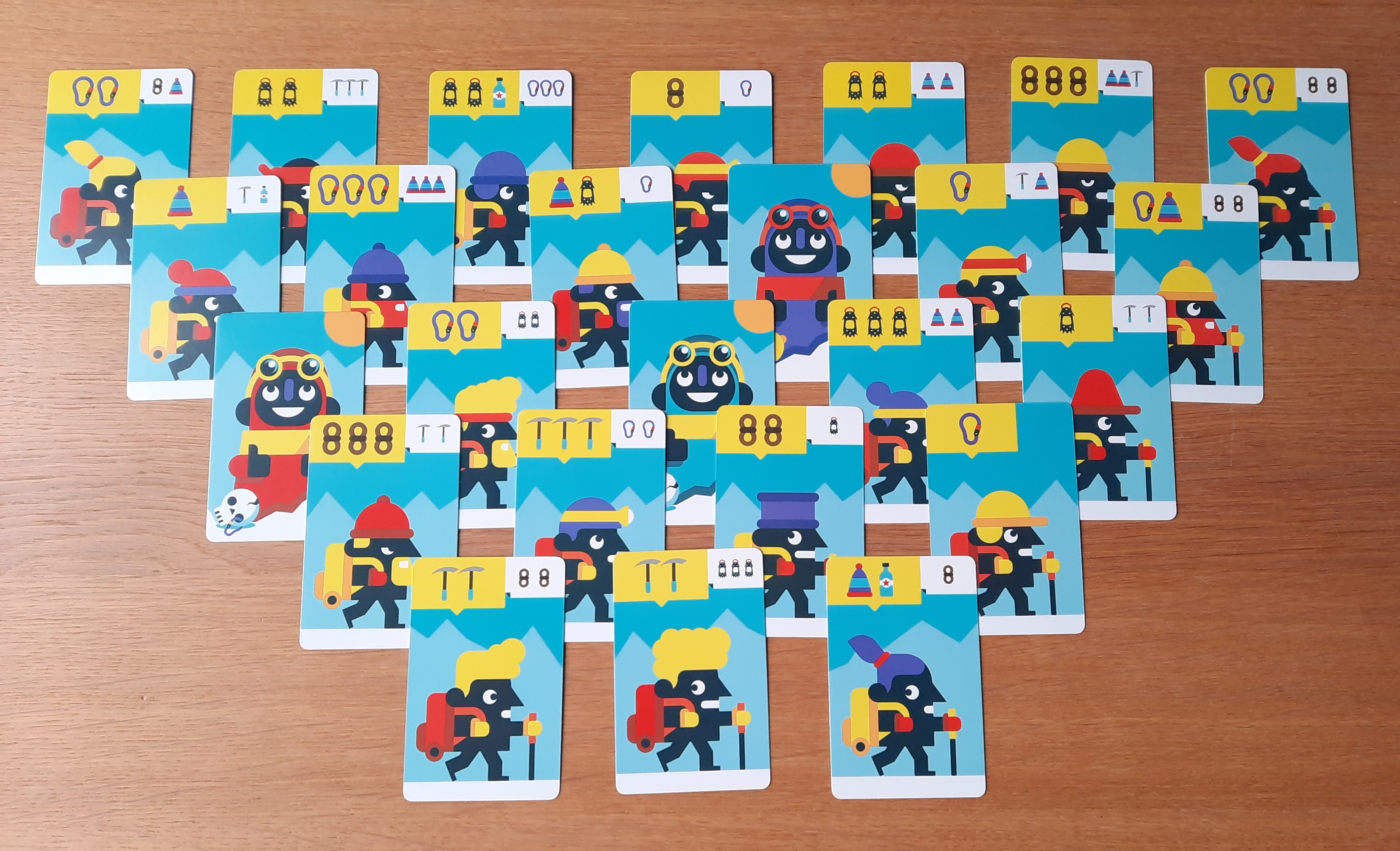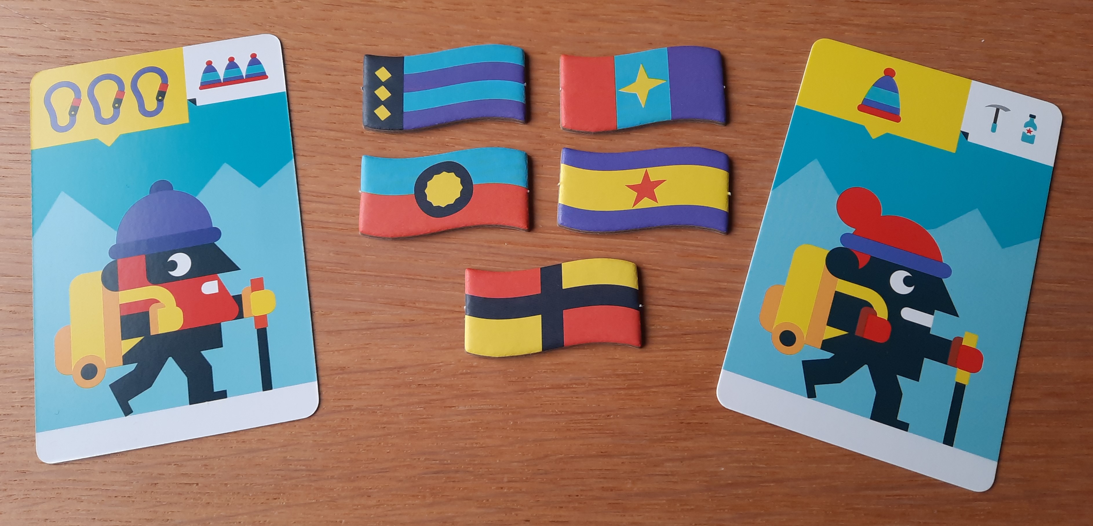 Des sherpas peuvent se trouver parmi les alpinistes. Un sherpa permet au joueur qui le récupère de retourner une des cartes quil possède déjà devant lui. Car sur chaque carte est également mentionné ce qui figure au dos de celle-ci.
