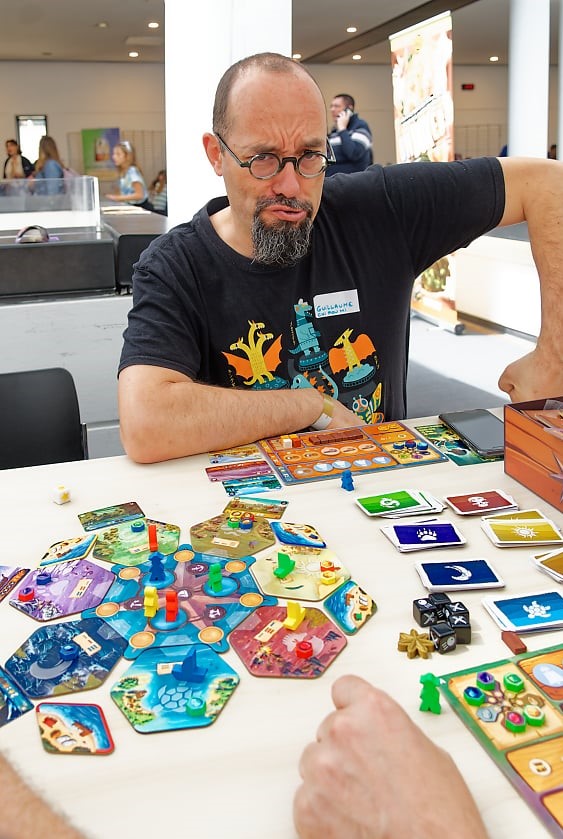 explorations. Débute ainsi un travail en co-construction. Dans un premier temps, les règles sont transformées et sont ajoutés le plateau dactions et les mers (sous la forme de tuiles rondes), ainsi que les bonus des mers. Un gros travail est effectué sur lergonomie et un nouveau proto voit le jour en février 2022, notamment avec des tuiles hexagonales qui permettent différentes configurations. En avril, une analyse du type de motivation des joueurs est effectuée, suivie, en mai, dune analyse thématique. Les éditeurs décident que chaque mer doit correspondre à une époque. Chacune fait dailleurs lobjet dune étude détaillée. Enfin, Yvan Tesi, illustrateur toulonnais, est ajouté au projet en décembre 2022. Une nouvelle version du proto est inaugurée au festival Wanna Play à Bruxelles, en juillet 2023, puis au Brussels Games Festival. Le jeu bénéficie dune grande visibilité, ce qui encourage Thomas et Matthieu à participer à dautres festivals: le LudiBruche et le Festival des jeux de Cannes en 2024. Avec un grand succès: «Le dimanche matin, des gens ont couru pour pouvoir tester notre jeu», se souvient Thomas. Dans le même temps, des créateurs de contenu sont contactés dans de nombreux pays, des États-Unis à Taïwan, en passant par lEspagne, lItalie, lAllemagne, la Pologne, la Roumanie, la Finlande, lAngleterre, les Pays-Bas et la France. «Nous avons pris le risque de leur proposer de parler du jeu, mais sans leur offrir de rémunération. Sils acceptaient, nous leur parlions de la contrepartie: les représenter dans le jeu sous les traits dun capitaine», expose Thomas. Reste à développer le jeu dans son ensemble car, comme la constaté une joueuse dans un festival, «cest tout un univers qui a été développé!». Le jeu comprend en effet trois modes (découverte, avancé et solo) et de nombreux modules. Thomas explique: «La boîte de base représente 25 % de lunivers des 7 mers. Le reste se trouve dans les différents modules. En fonction du mode et de lextension, la manière de jouer change, ce qui oblige à développer des stratégies différentes et permet un renouvellement.» Sont ainsi créées «Pirates et corsaires», «Nouveaux gouverneurs» et «Les aventures infinies», des extensions compatibles entre elles, avec du matériel qui pourrait être intégré dans une seule boîte. Doit encore être développé «Saison des brumes» qui verra apparaître un vaisseau fantôme, des brumes entre les mers et un mini-legacy. «Ce serait génial pour les fans et permettrait de clore notre univers, qui a véritablement un sens», conclut Thomas. Et pour donner corps à tout ce monde, il est aussi fait appel à Jonathan Aucomte, illustrateur bien connu. Et cet univers suscite un bel enthousiasme! Le jeu trouve ses fans dont certains prennent linitiative de le présenter dans divers festivals. Grisés par cette ferveur, Thomas et Matthieu lancent, le 22 mars dernier, une campagne de financement participatif qui a finalement été interrompue le 10 avril, faute du succès escompté. Chez Critical Hut, on comprend les raisons de ce couac. «En tant que débutants dans lédition, nous avons commis des erreurs. Nous nous sommes notamment laissés emporter par notre enthousiasme et nous avons visé trop haut. Si nous nous en étions tenus à notre plan de base, ce ne serait pas arrivé. De plus, nous avons surtout visé les nouveaux backers, mais ils ne représentent traditionnellement que 5 à 10 % des participants à une campagne de financement», explique Thomas qui ajoute: «Et nous aurions dû écouter les signes. Le week-end du lancement, nous devions présenter le jeu à LudiNord, mais ils nous avaient oubliés. Ils nous ont donc fourni un emplacement en dernière minute, dans la salle des protos, au pied dune scène très bruyante. Et pour couronner le tout, la veille, notre voiture nous a lâchés!». Quand ça ne veut pas . Depuis lors, un sondage a été effectué, les boulons ont été resserrés, les erreurs corrigées et de nouveaux fans conquis. Croisé par hasard à Montpellier, Guillaume Chifoumi, le Monsieur Guillaume de Tric Trac, a exprimé son opinion: « Vous navez pas à avoir honte de votre jeu car vous en tenez un [vrai jeu] en main». Des illustrateur et illustratrices supplémentaires, Clément Masson, Emmanuelle Cotte et Mathilde Durand, ont été appelés et les fabricants se bousculent au portillon. Au final, «Les 7 mers» représente une somme considérable de travail pour Critical Hut (plus de 600 parties du jeu de base, 500 jours de travail) et un important investissement financier. Une vingtaine de personnes a participé de près ou de loin au développement. Léditeur bruxellois se sent donc prêt pour la nouvelle campagne, qui débutera le 17 mai prochain, toujours sur Gamefound. «Cest la plateforme idéale pour nous, car européenne, sérieuse et multilingue», explique Thomas. «Cette nouvelle campagne sera plus équilibrée. Cette fois, nous sommes sûrs de notre coup.» Il faudra sans doute attendre mars 2025 pour livrer les jeux aux backers. Une version retail, allégée et destinée aux familles, sera ensuite créée. Un distributeur sest déjà montré intéressé pour les pays germanophones. Critical Hut va continuer à écumer les festivals. «Cette fois, nous aurons des boîtes à vendre!». Et la suite? Le retour de Card Trip et lédition dun jeu original, mais avec moins de travail de développement. «Nous savons que nous tenons le bon bout. Nous essayons daller de lavant. Nous avons envie de jeux qui se renouvellent, dexpériences qui durent dans le temps et dexploration de zones encore inexploitées.» Et despérer que «Les 7 mers» constituera un premier succès qui permettra denclencher une dynamique positive pour Critical Hut. |