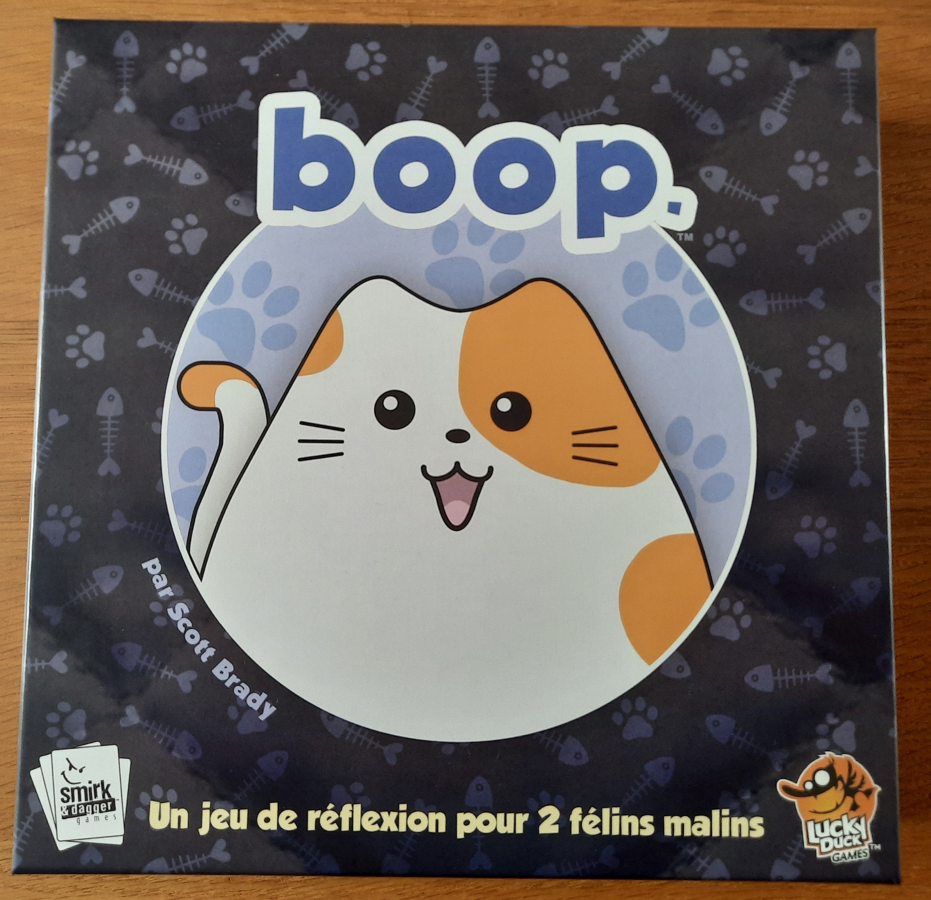 Boop : un jeu de Scott Brady, illustré par Curt Covert, publié par Smirk & Dagger Games en novembre 2022 et localisé en France par Lucky Duck Games en juillet 2024.